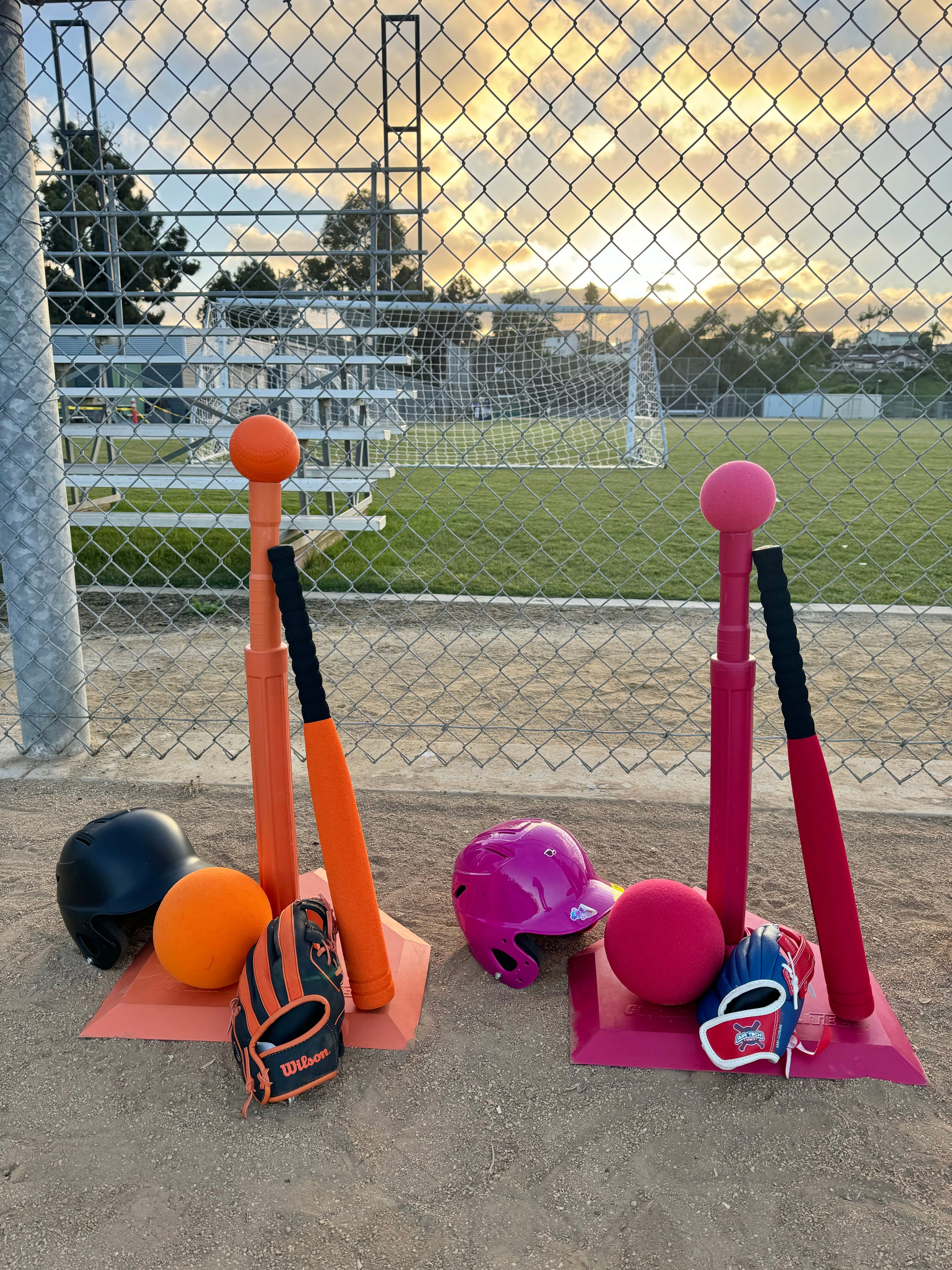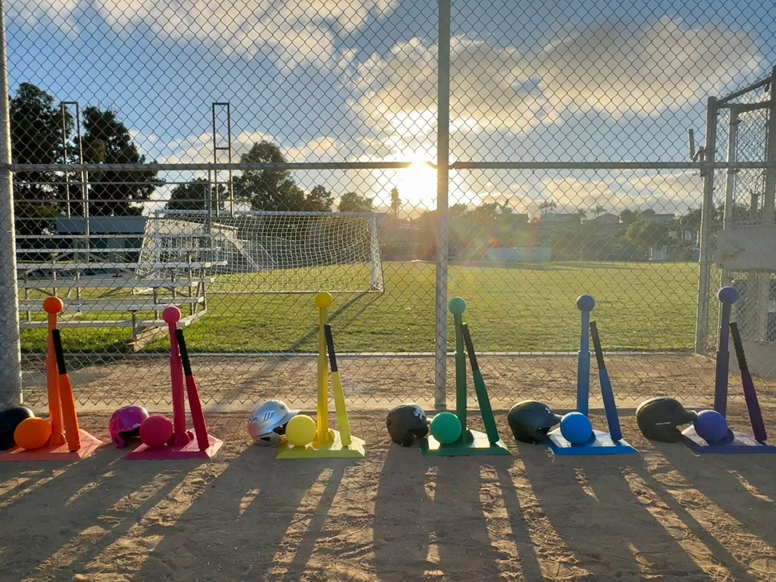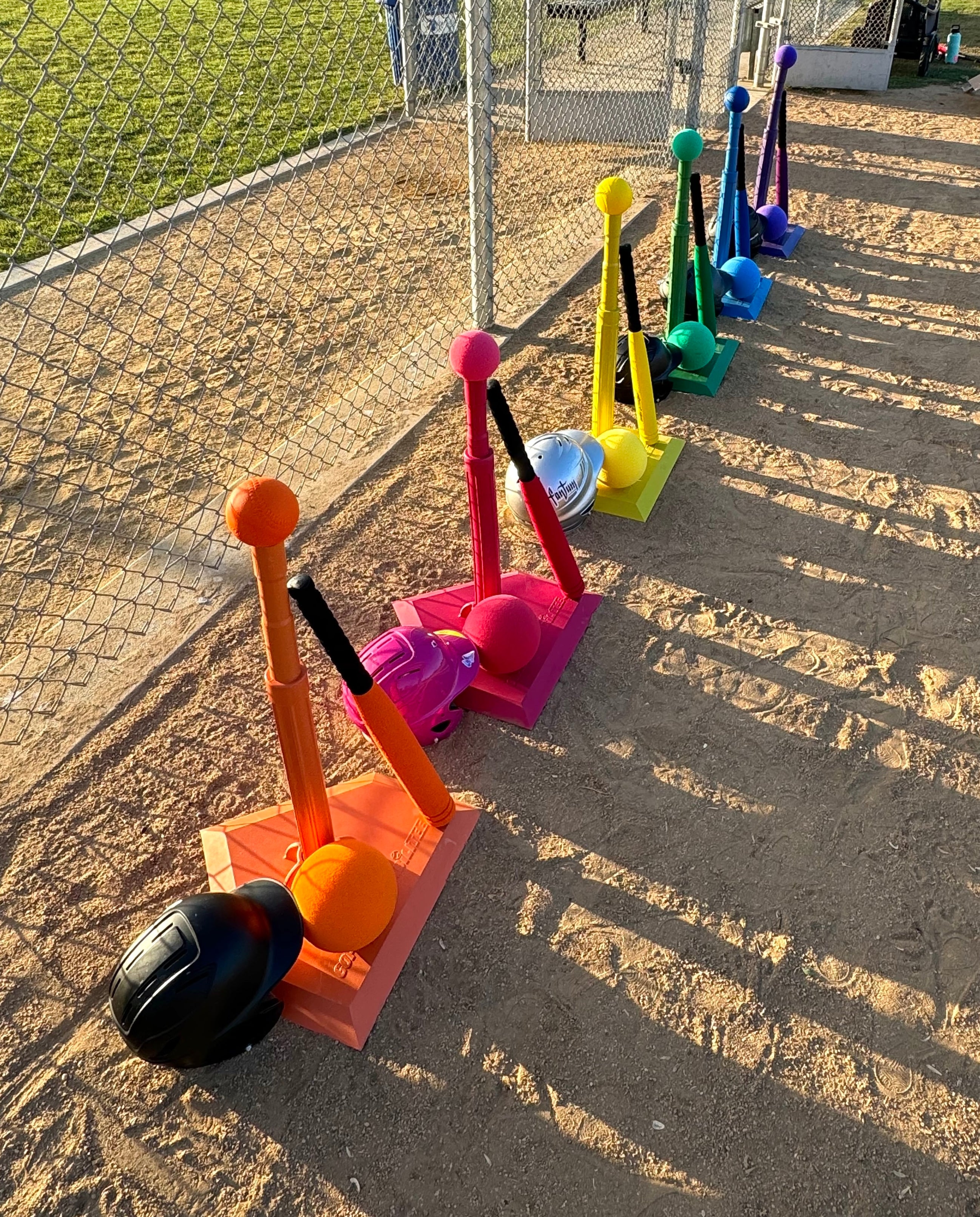 Shorteez t-ball practice fields include physical baselines for high visual pathways from base to base.
